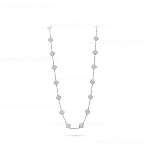 Collana lunga Van Cleef Arpels Magic Alhambra con 20 pendenti con motivi in oro bianco e calcedonio