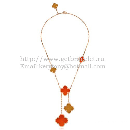 Van Cleef Arpels Magic Alhambra Collana in oro rosa 6 motivi con occhio di tigre onice madreperla