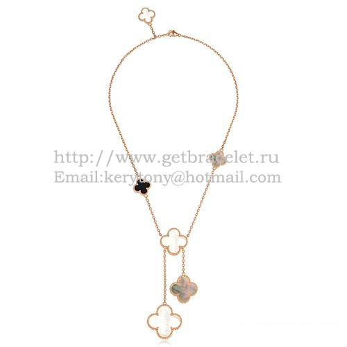 Collana Van Cleef Arpels Magic Alhambra in oro rosa 6 motivi con madreperla bianca grigia
