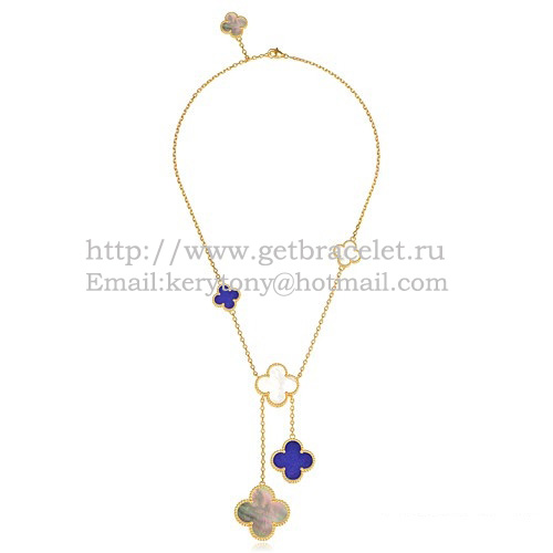 Van Cleef Arpels Magic Alhambra Collana in oro giallo 6 motivi con lapislazzuli bianchi grigi madreperla
