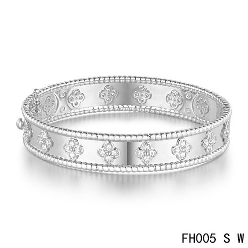 Bracciale Van Cleef Arpels Perlee Clover in oro bianco con diamanti, modello piccolo