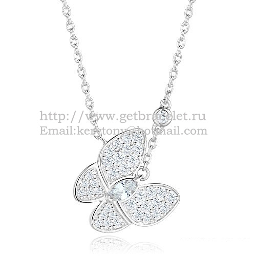Collana con due farfalle Van Cleef Arpels Combinazione di pietre in oro bianco e pavé di diamanti