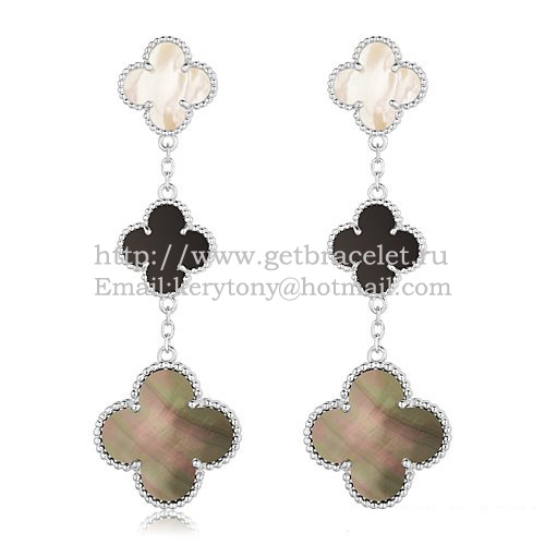 Orecchini Van Cleef Arpels Magic Alhambra a 3 motivi in oro bianco con combinazione di pietre