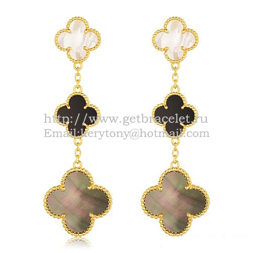 Orecchini Van Cleef Arpels Magic Alhambra a 3 motivi in oro giallo con combinazione di pietre